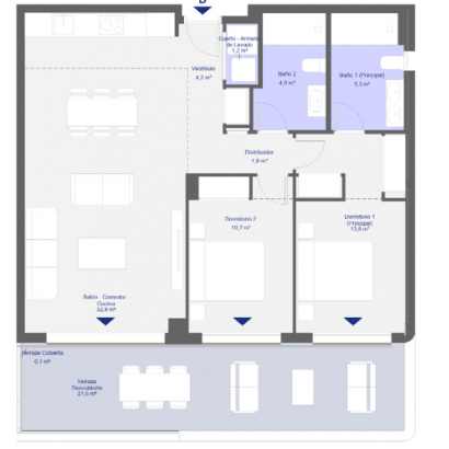 · Bathrooms with vitrified porcelain fixtures, monobloc taps and thermostatic showers.